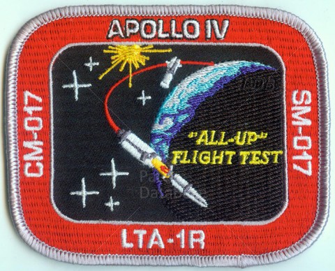 This patch is a commemorative patch and was limited to 50 patches. The patch displays the identifications of the service, command and lunar modules as used on the mission. The separated S-IC second stage is visible and shows the S-IVB jetissoning the S-II stage. Three large stars are in memorial of astronauts Virgil Grissom, Ed White and Roger Chaffee, the three smaller stars symbolize the 3 orbits of the Apollo 4 mission. Artlist: Liem Bahneman