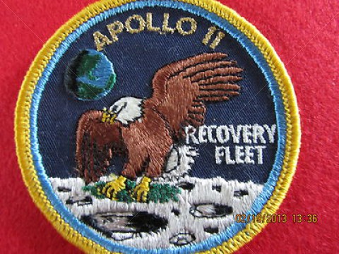 This is the replica patch commeorating the USS Wasp's role in the Gemini capsule recoveries. The quick tell is the offset appearance of the rocket exhaust.