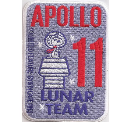 This is a modern reproduction of the original Apollo 11 Lunar Team patch. There are minor differences in the letter stitching and embroidery styles.