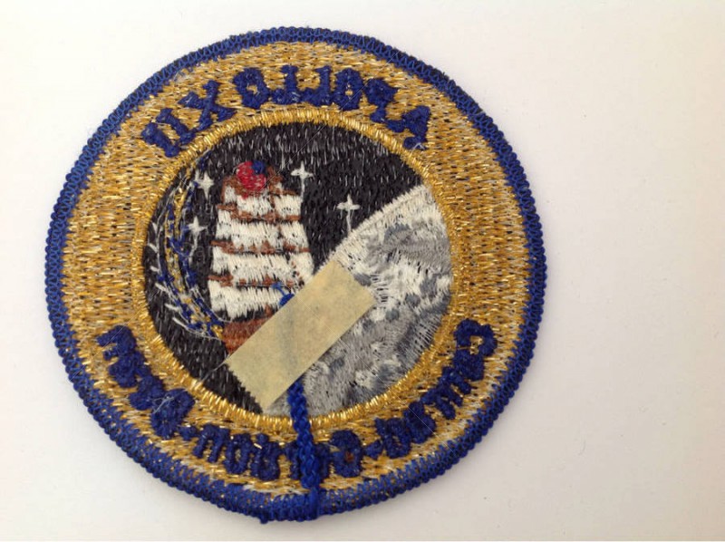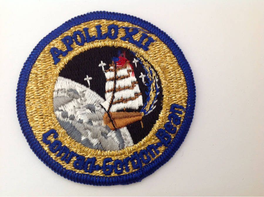 Fully-embroidered Apollo 12 patch that lacks much detail. Bare cloth back.