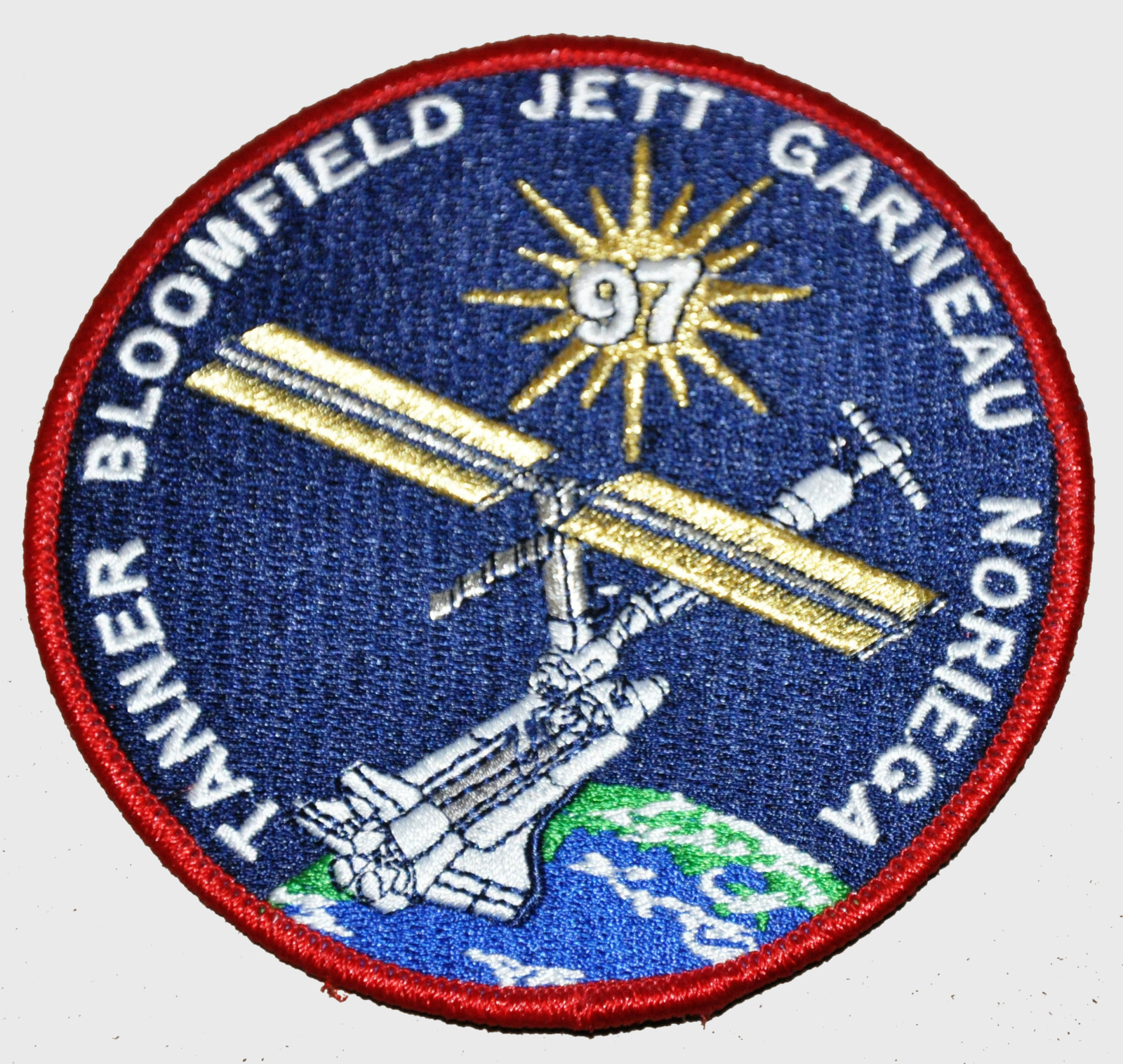 The crew patch depicts the Space Shuttle docked to ISS in low Earth orbit after the activation of the P6 electrical power system. Gold and silver are used to highlight the portion of ISS that will be installed by the STS-97 crew. The Sun, central to the design, is the source of energy for ISS.