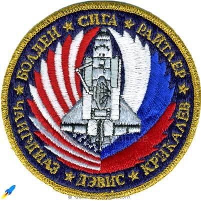 This version of the STS-60 patch features the astronaut names in Cyrillic lettering.