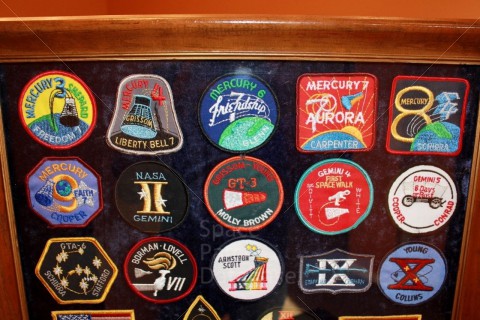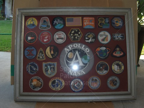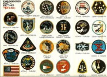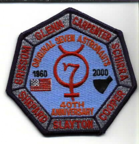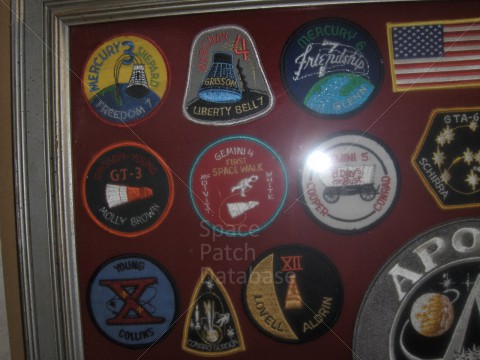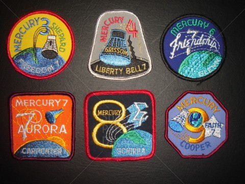 This set could have several evolutions. Images attached to this indicate that there are several versions of the Mercury 9 patch that have either a blue border around the silver star, or a silver border around the star, or no border at all.