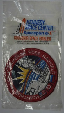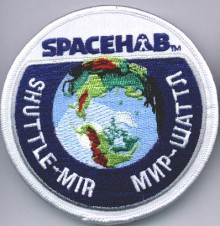 This patch was produced by Space Coast International and was carried on board STS-76 in the Official Flight Kit. It has some minor differences from the official A-B Emblem version, primarily in the Mir detail and extra set of solar panels.