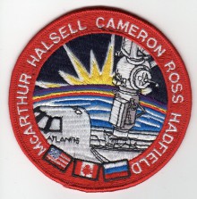 This patch I have identified as "Version 1" of the A-B Emblem STS-84 patch. It differs slightly in the booster stacks and flame embroidery with the "Version 2" A-B Emblem patch.