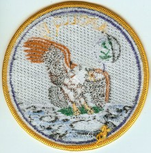 While A-B Emblem produced the crew versions of the patch, their souvenir version diverges from the crew version in a few significant ways. The eagle is light blue and the border is stitched in gray rather than light blue.
