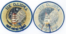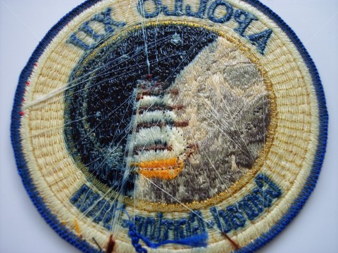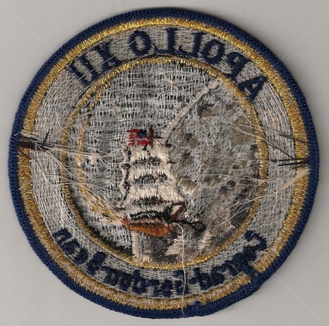 Fully embroidered with radial stiching, which is unique for a 3" version of this patch. Stars resemble the 4" A-B Emblem version. Very rough stitching for the sail shadows.