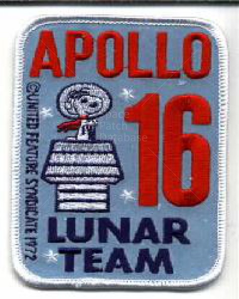 This is the Lions Brothers hallmarked patch for Apollo 16. It features a hidden '16' stitched upside down below the point of the flying vector.
