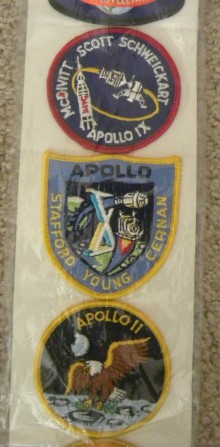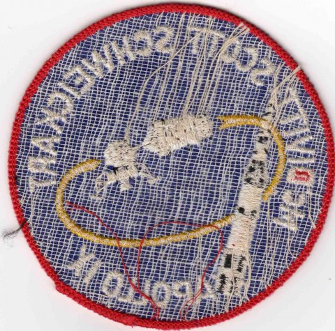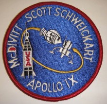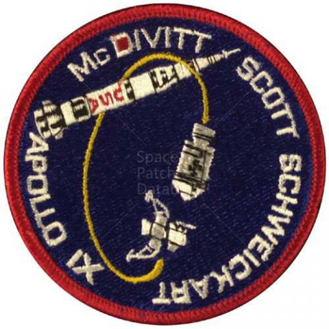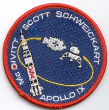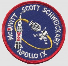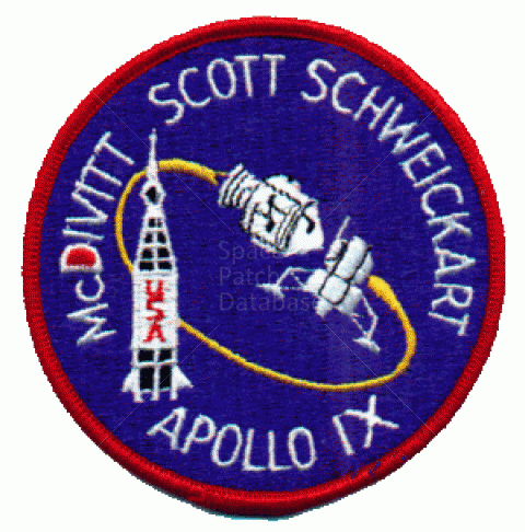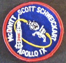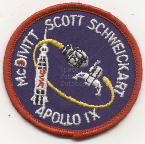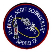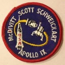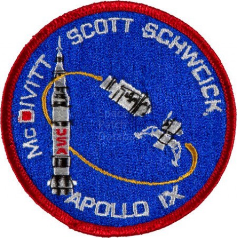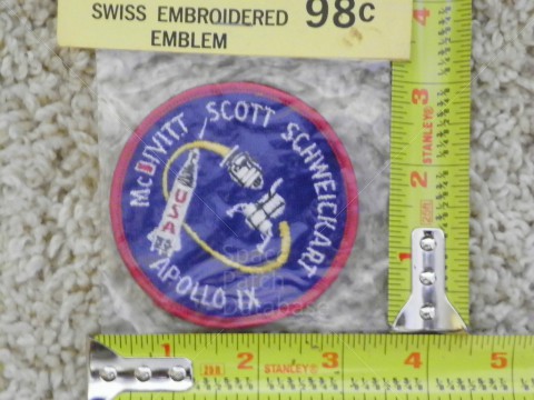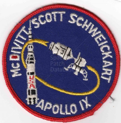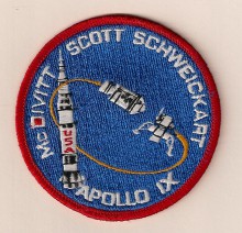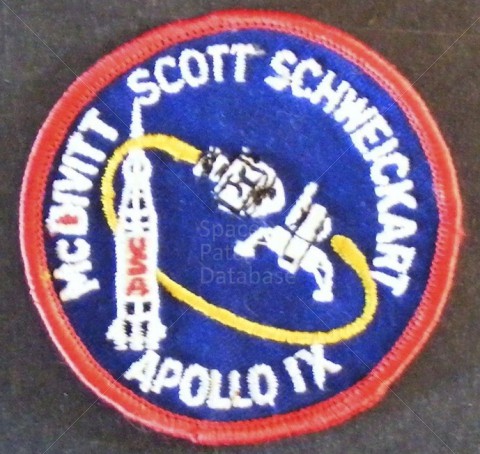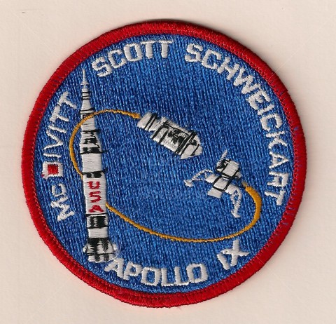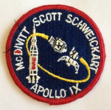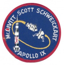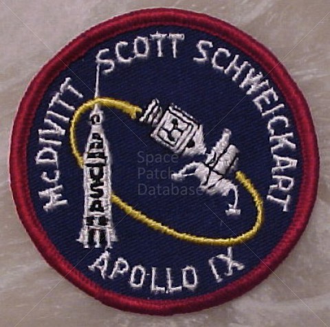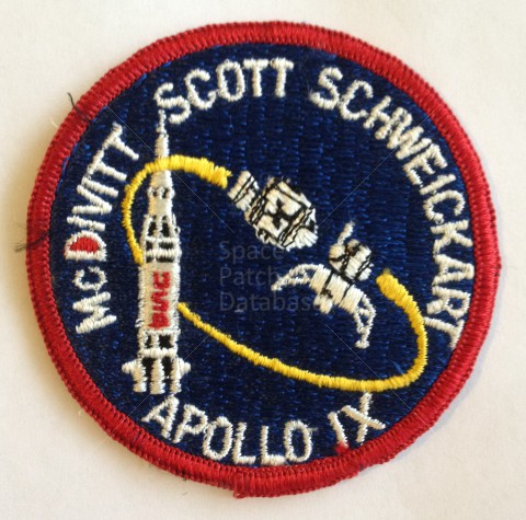 This is a rare variation of the Apollo 9 patch that features an embroidered Saturn V, instead of the more Atlas-looking rocket on common, souvenir versions.
