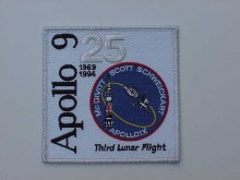 Swissartex version of the Apollo 9 3" souvenir patch. The detail isn't too bad on this particular issue, partcularly on the LEM. The legs are thinly stiched and the rocket nozzle on the LEM is triangular.