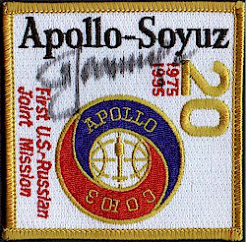 This Apollo-Soyuz Test Project patch is possibly part of a set of modern reproduction Apollo patches produced by Cape Kennedy Medals. It appears to be identical to the A-B Emblem version, however minute, subtle differences can be found. The gold stars appear to be sewn on top of the red field rather than being holes in the red field as in the A-B Emblem version.