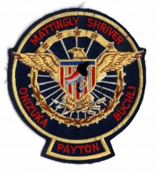 This set of two patches, mounted in a glossy brochure is from an unknown source, and unknown distrubution, perhaps mail order. The patches are sourced from Lion Brothers. Curiously, of all the examples of this set seen, the hard to find orange bordered Apollo 11 version is present.
