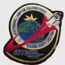 This Randy Hunt replica patch features the crew line up with Dr. Michael Lampton. Lampton was replaced by backup payload specialist Dirk Frimout from Belgium due to medical problems.