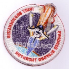 This patch has a white inner border, a trait of the original artwork of the STS-35 emblem. The stars are noticebly smaller in this version than the other 'white border' version and uses a smaller typeface for the names.