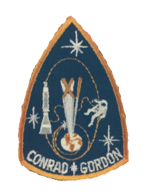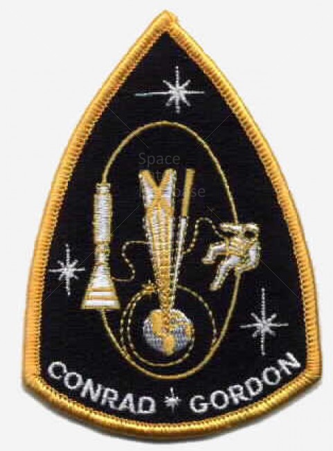This Gemini XI patch is designed like the actual patch which the astronauts wore into space. Souvenir versions lack the detail or the star between the astronaut's names. The patch is readily distinguished by the star on the astronaut's chest and jaggy appearance of the Agena unit.