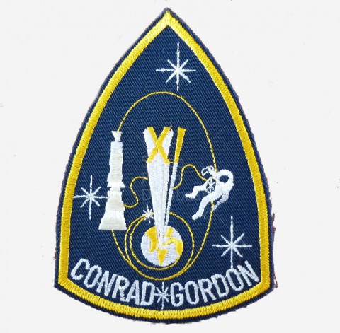 This Gemini XI patch is the version as worn by the crew. Subtle differences from the common souvenir version include blue background (Navy), star between their names, and clear detail.
