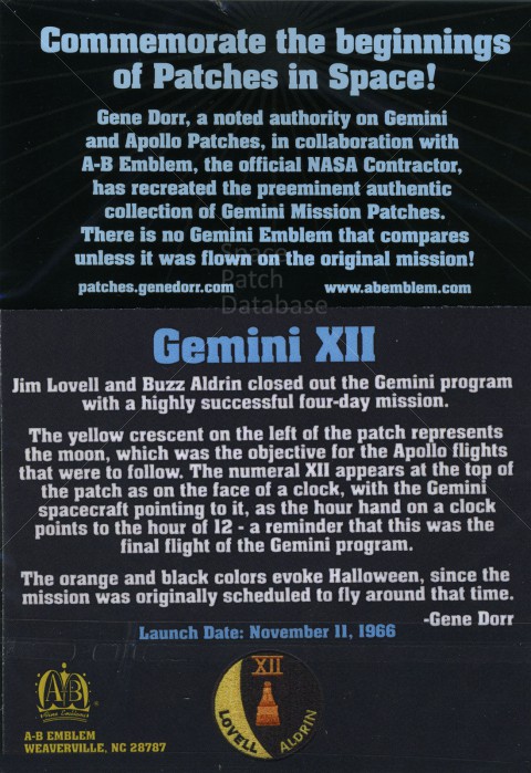 Gemini 12 - 3" - A-B Emblem/Gene Dorr
