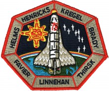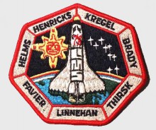 This version of the STS-44 patch has a cut edge, bare cloth back and white flames from the SRB's. The external tank is also lighter so the red band stands out more.