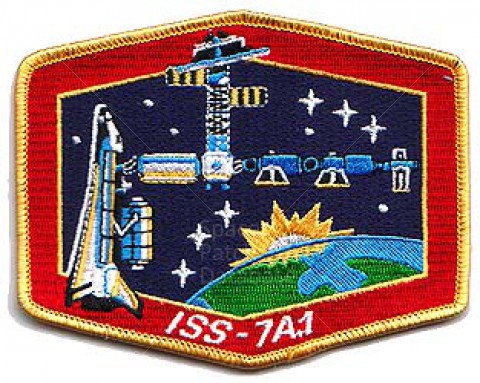 This version of the STS-105 crew patch has a thicker border than the flown STS-105 A-B Emblem version.
