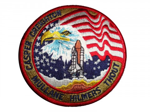 This version of the STS-27 patch was manufactured by Eagle Crest Emblem Inc. of Taiwan. (Formaly Swissartex Emblem Inc. of Asheville, NC.28814).