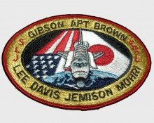 This patch differs slightly from the official Noguchi "Return to Flight" patch, which has a white overlock border. Randy Hunt also took the liberty to add the rest of the crew to the patch. There is also an alternate Noguchi personal patch from Randy Hunt