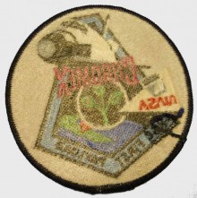 This patch was executed on a blue twill which gives the illusion of a blue border. Modern embroidery used.