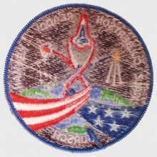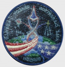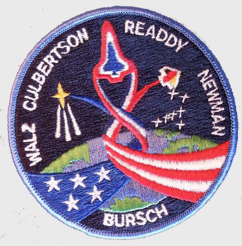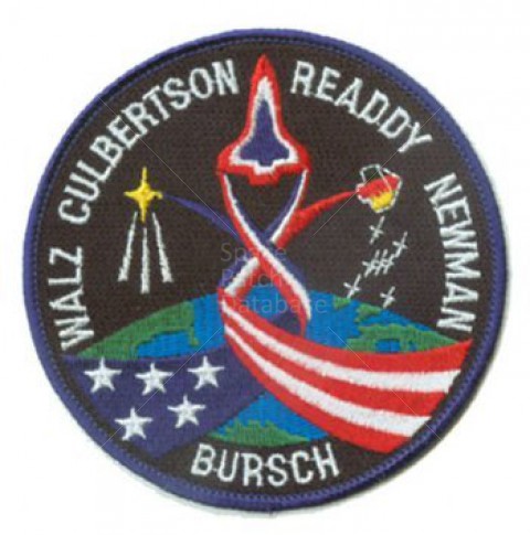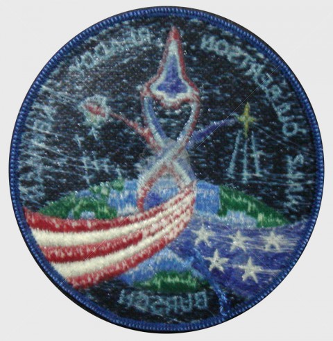 The five white stars and one yellow star of the insignia symbolize the flight's numerical designation in the Space Transportation System's mission sequence. The insignia also depicts the triangular SPAS-ORFEUS on the right