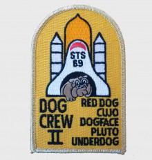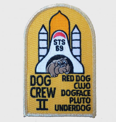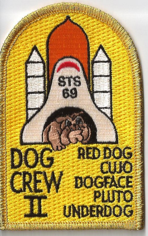 A close comradery formed among Walker, Voss and the rest of the crew, and they dubbed themselves the "dogs of war", with each of the STS-53 "Dog Crew" members assigned a "dog tag" or nickname. When the STS-69 astronauts also became good buddies, they decided it was time for the Dog Crew II to be named. Walker's dog tag is Red Dog, Voss's is Dogface, Pilot Kenneth D. Cockrell (second from left) is Cujo, space rookie and Mission Specialist Michael L. Gernhardt (left) is Under Dog, and Mission Specialist James H. Newman (right) is Pluato. The Dog Crew II patch features a bulldog peering out from a doghouse shaped like the Space Shuttle and lists the five crew member's dog names. The five astronauts are scheduled to lift off on the fifth Shuttle flight of the year at 11:04 a.m. EDT, August 31, aboard the Space Shuttle Endeavour.