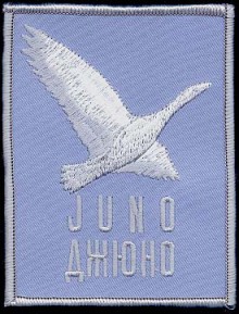This is the A-B Emblem prototype version of the STS-76 patch. It has white thread instead of black for the Mir details and an extra set of solar arrays. The stars have a black shadow, but do not appear behind the yellow contrails like in the souvenir version.